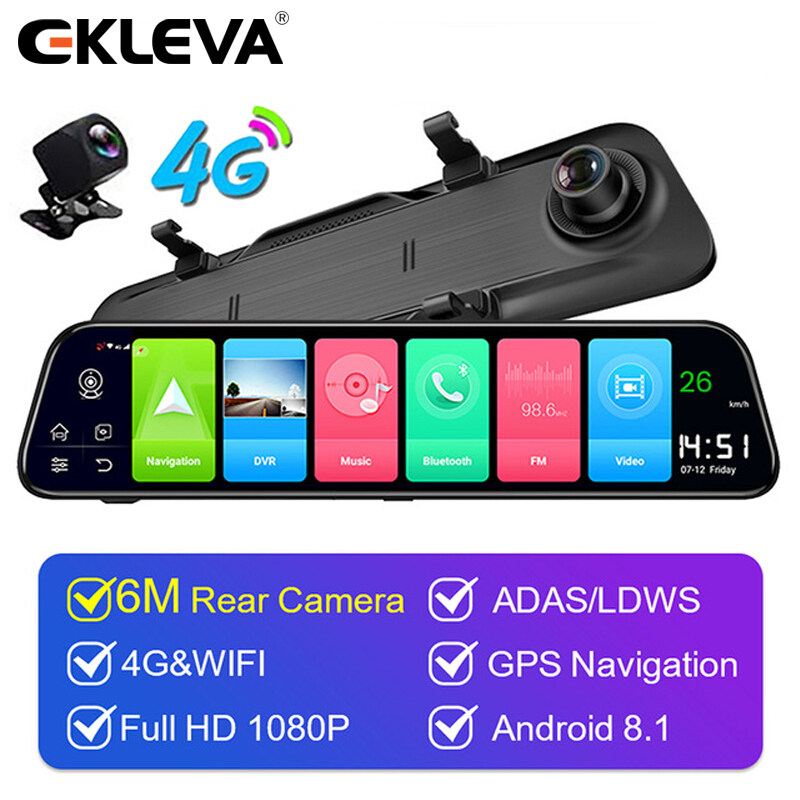 EKLEVA Android 8.1 RAM+ROM 2GB+32GB/4GB+32GB ADAS 10 in 1 DashCam Car DVR Mirror Camera 4G WIFI GPS Bluetooth Full HD 1080P Video Recorder