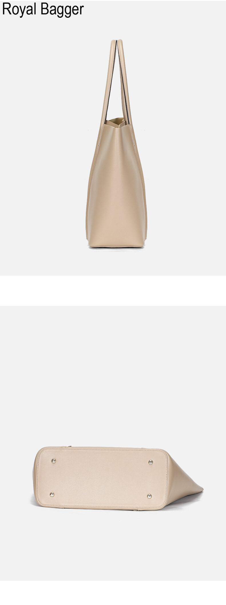 Royal Bagger New Fashion Tote Bag For Women Genuine Cow Leather Casual Large Capacity Shoulder Bag Elegant Ladies Girl Crossbody