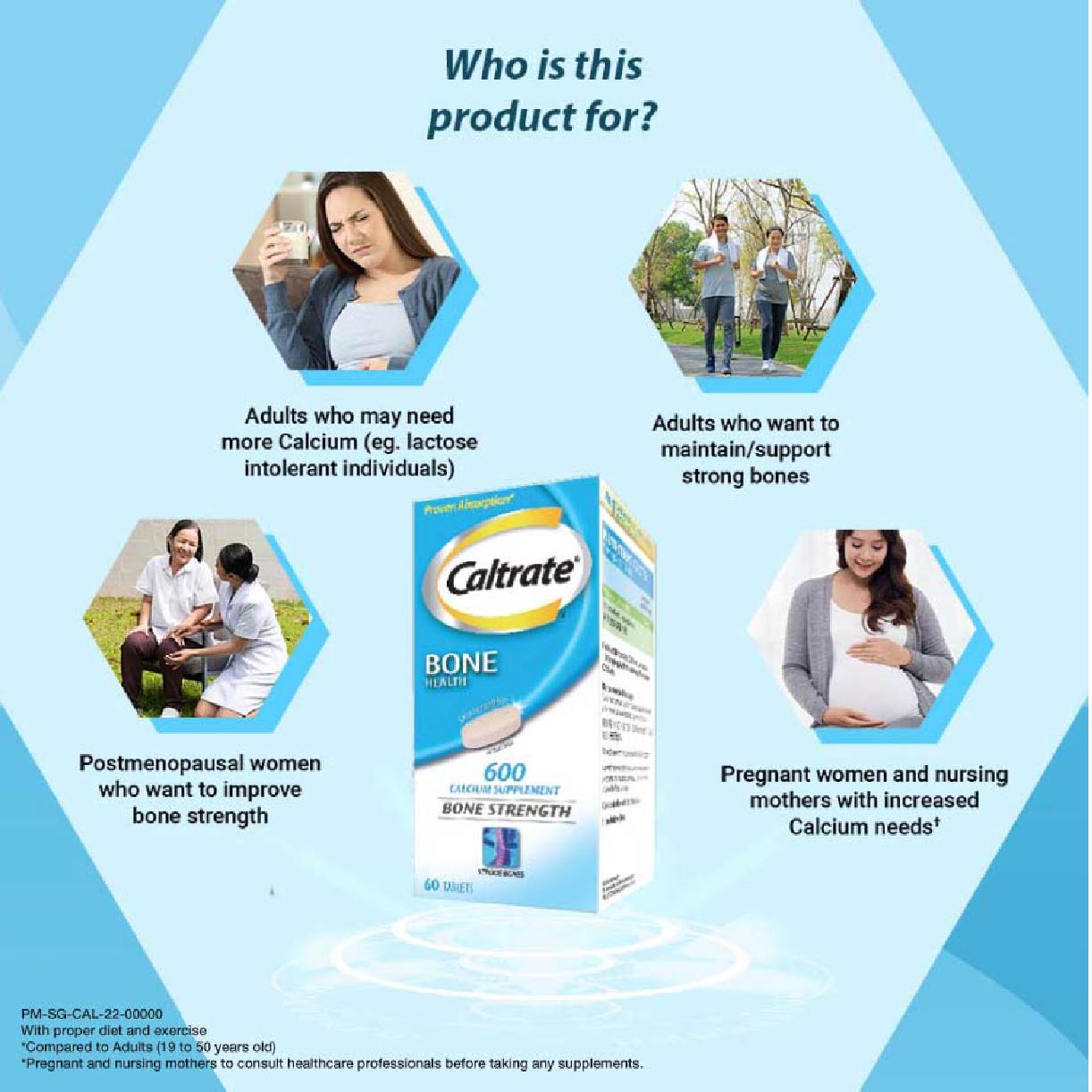 Caltrate® Bone Health contains 600mg of Elemental Calcium to help build and maintain strong bones.