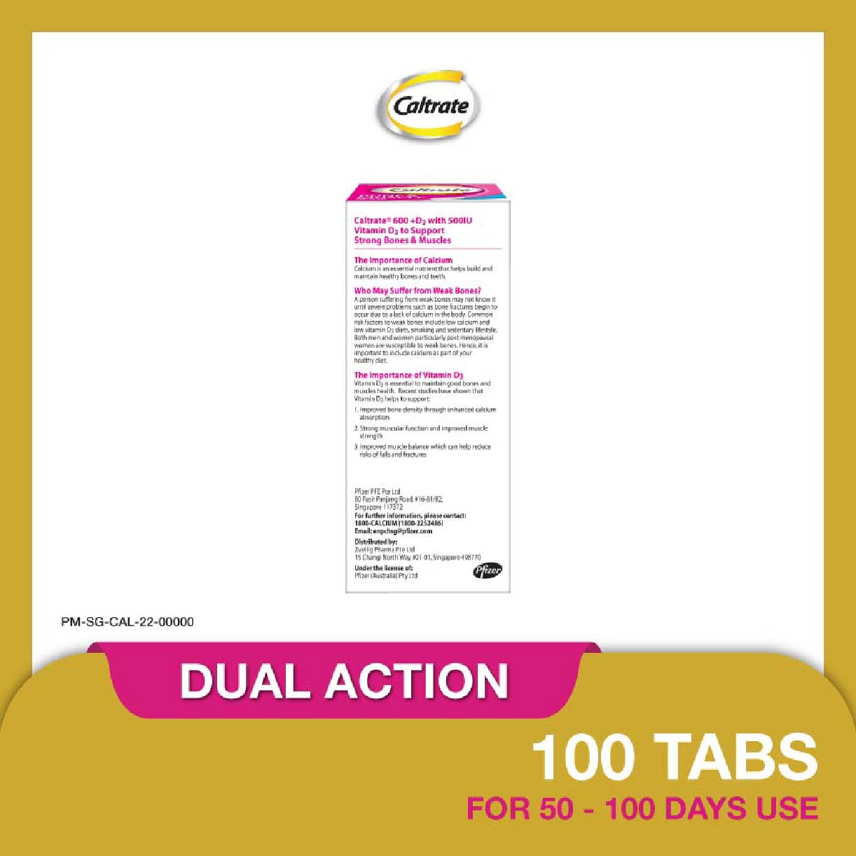 Caltrate® Bone & Muscle Health contains 600mg of Elemental Calcium for bone health and 400IU Vitamin D2 to help muscle health.