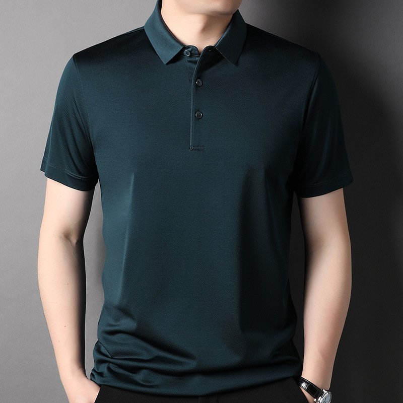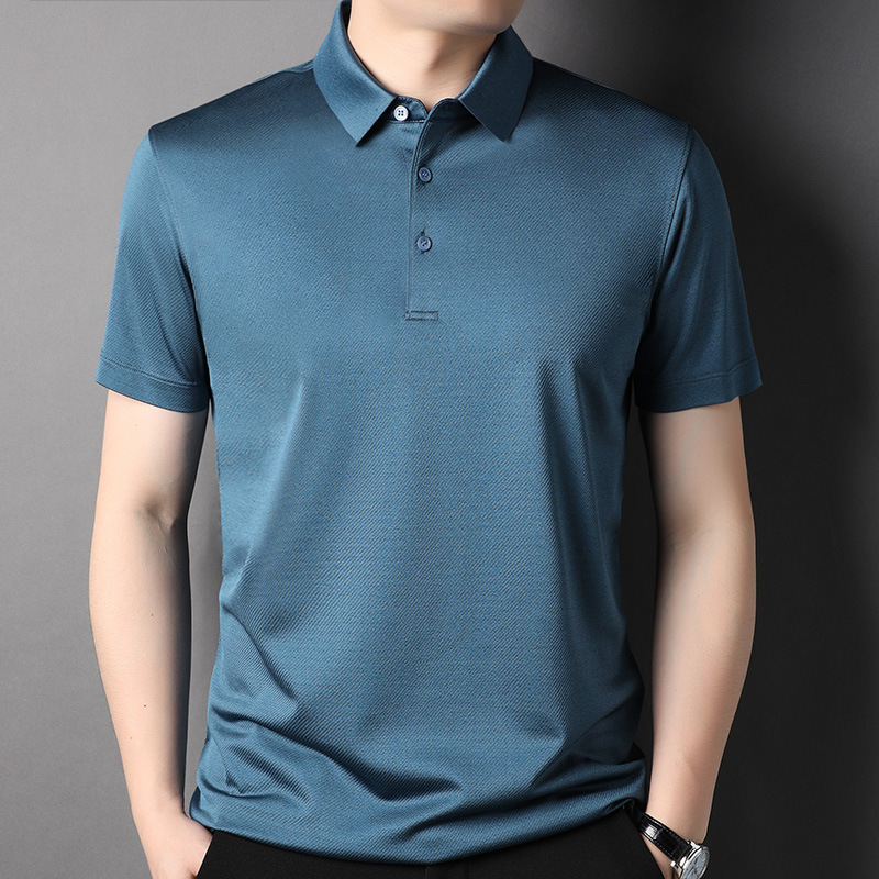 Factory Wholesale Men's Luxury Natural Material Solid Silk Polo Shirts 5 Colours