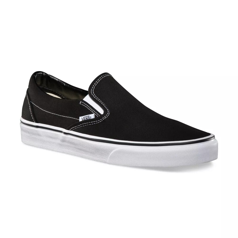 Vans The Classic Slip-On has a low profile, slip-on canvas upper with all-over checker print, elastic side accents, Vans flag label and Vans original Waffle Outsole.