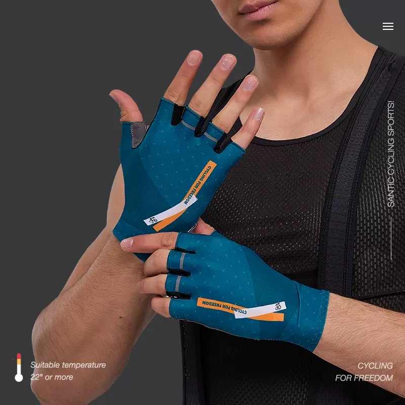 Santic Men Cycling Gloves Breathable Non-slip Shockproof Bike Bicycle Short Finger Gloves
