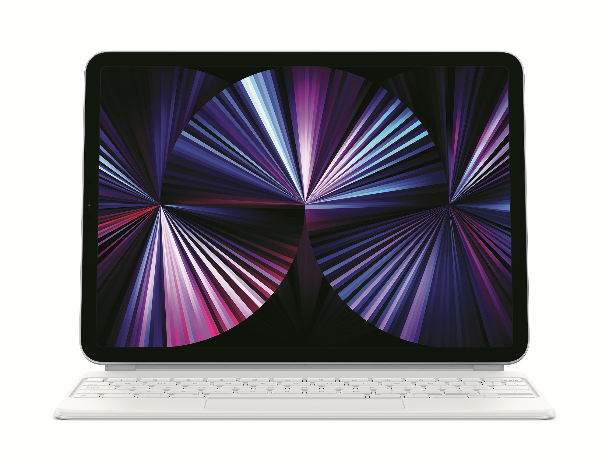Apple Magic Keyboard for iPad Pro 11-inch (3rd generation) and iPad Air (4th generation) - USEnglish. The Magic Keyboard is an amazing companion for iPad Pro 11-inch and iPad Air. It features an incredible typing experience, a trackpad that opens up new ways to work with iPadOS, a USB‑C port for pass-through charging, and front and back protection. The Magic Keyboard has a floating cantilever design, allowing you to attach iPad Pro and iPad Air magnetically and to smoothly adjust it to the perfect viewing angle for you.
