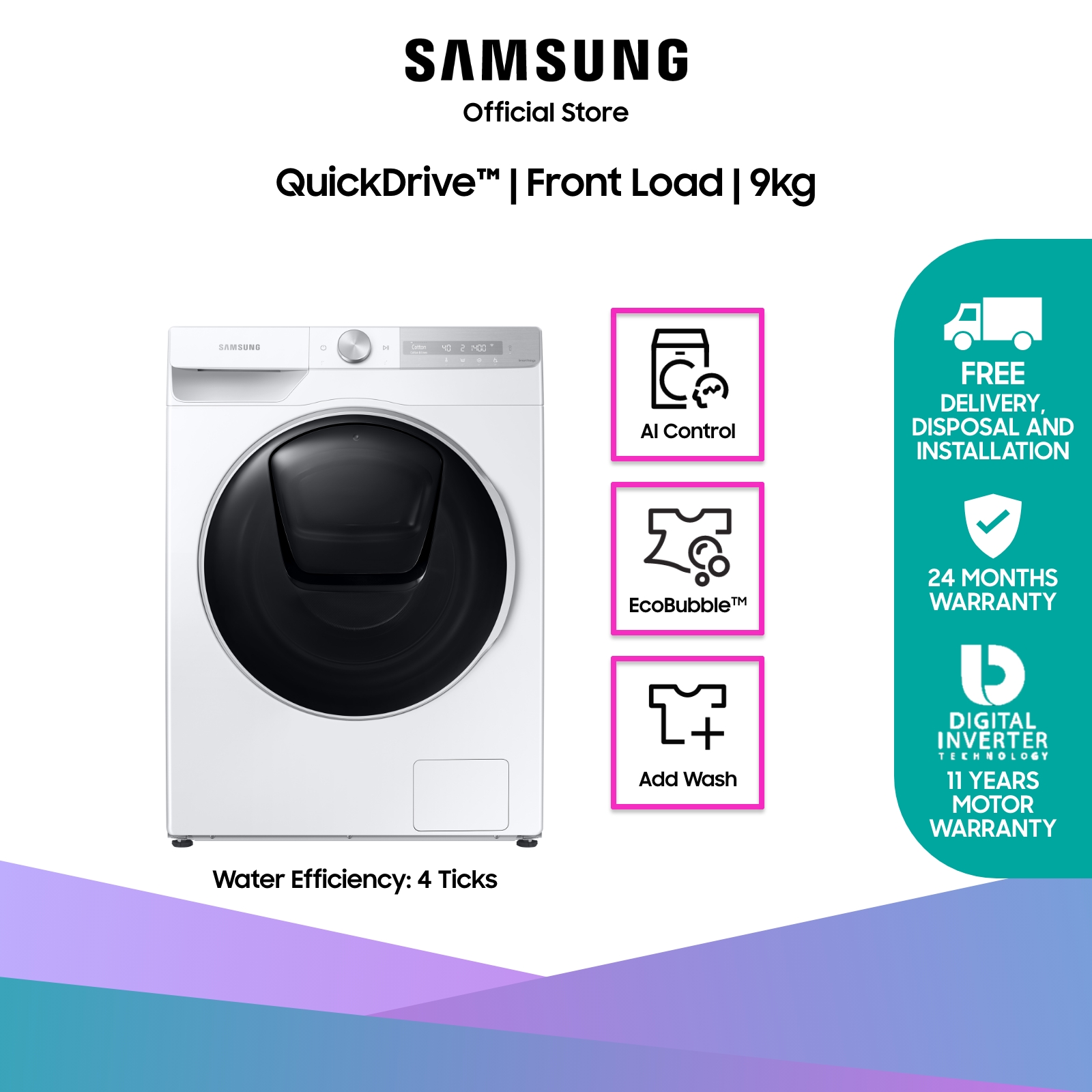 [Bulky] SAMSUNG WW90T754DWH/SP, Front Load Washing Machine, 9KG, 4 Ticks, with QuickDrive™