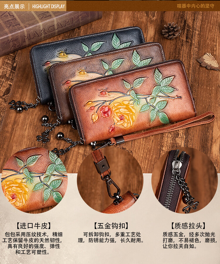 Royal Bagger New For Women Genuine Cow Leather Long Wallet Multi-Card Position Handbag Trending Purse Retro Elegant