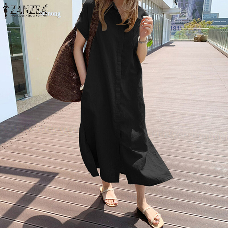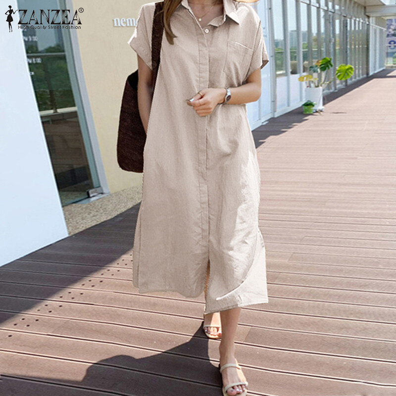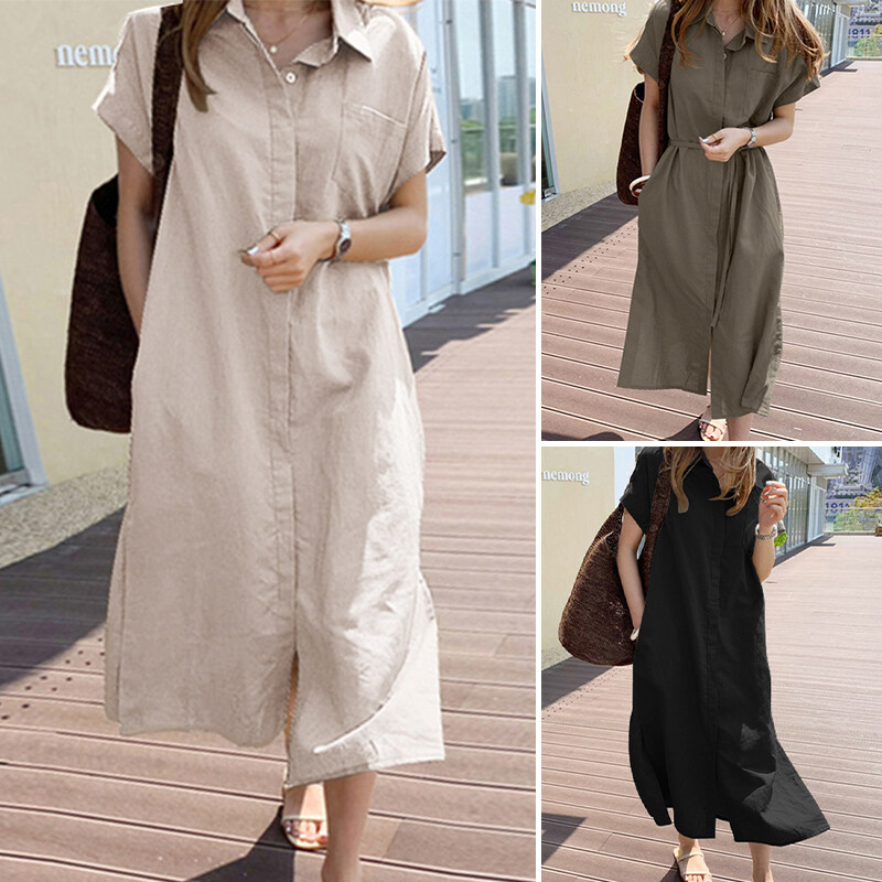 Style:Leisure,Bohemian,Retro,Europe,Literature,Loose,Shirt Dress,Split skirt side dress
