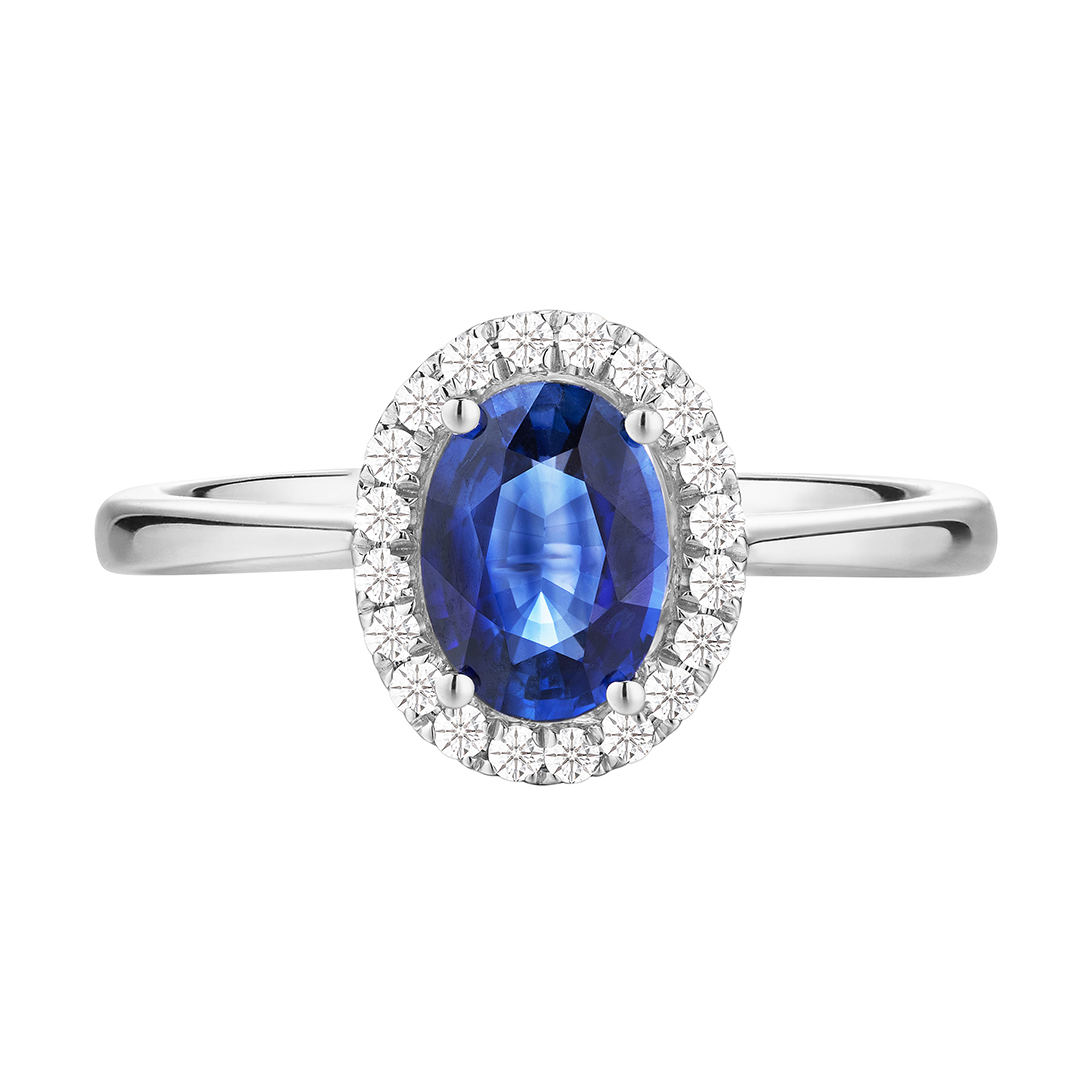 Lee Hwa Jewellery 18K White Gold Sapphire Ring with Diamonds