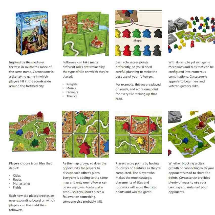 HOW TO ACHIEVE VICTORY: Players score points by having followers on tiles as features are completed. The player who makes the most strategic placements of tiles and followers will score the most points and win the game.