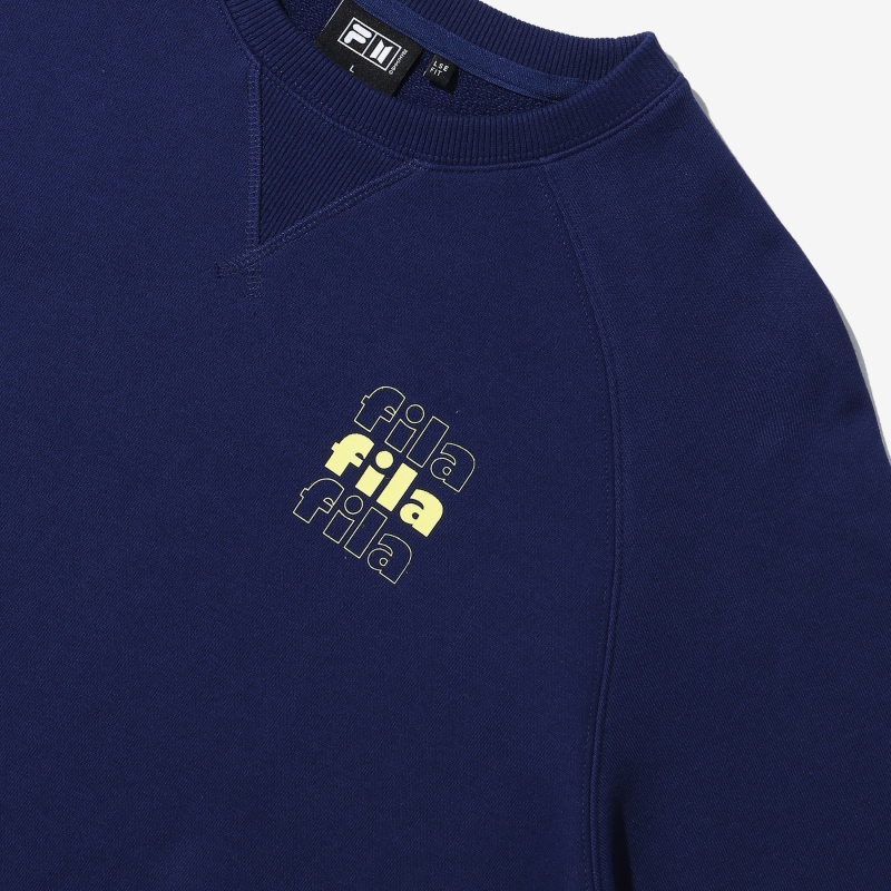 FS2POD4B05X_NAYFILA x BTS Dynamite Sweatshirt.This is a round man-to-man with a lively mood by matching the vivid yellow colored Dynamite asset graphic and navy tone fabric.The DISCO and FILA logos that repeat along the wave pattern are reminiscent of Dynamite songs.The pattern is composed of a loose-fitting silhouette with a relaxed fit, so it can be worn in a trendy way.It was designed by focusing on the color and mood felt in the Dynamite music video.Material: 100% cottonMade in Korea
