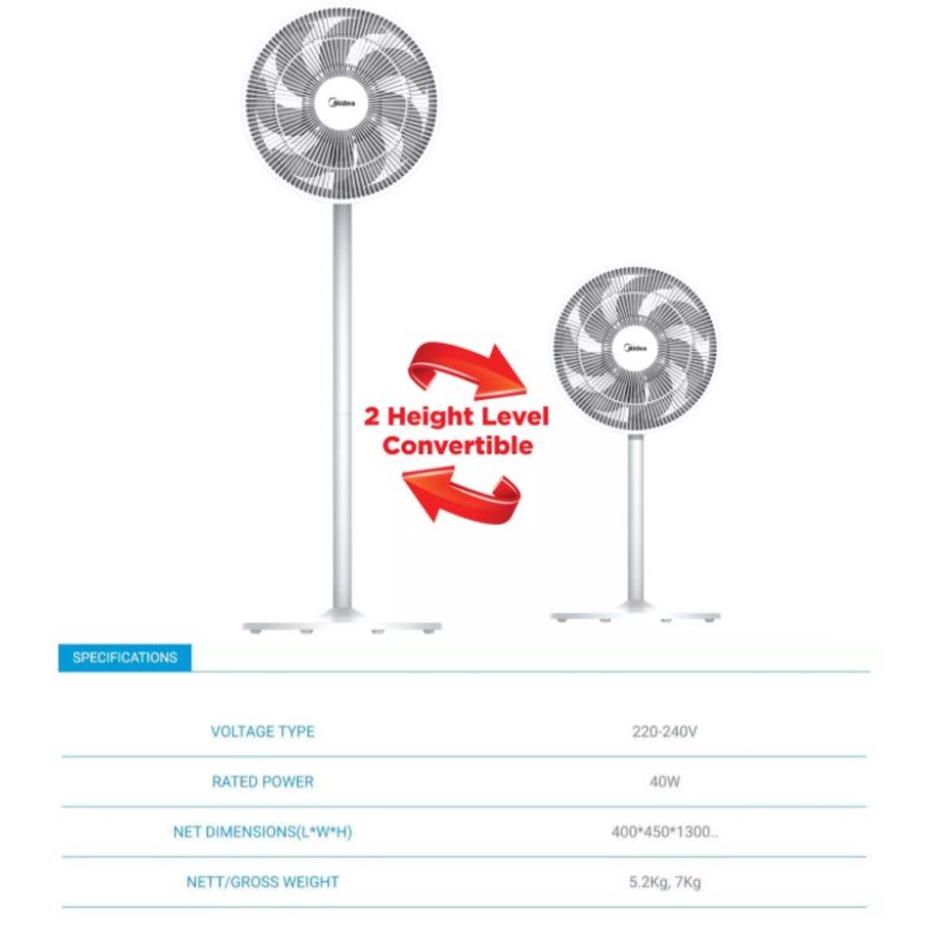 Midea MS1618W Grey Oscillation Stand Fan, 16 Inches
