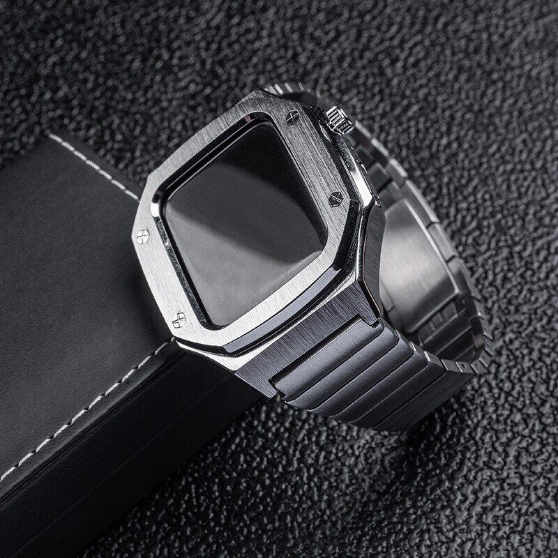 45Mm 44Mm Stainless Steel Metal Case + Strap For Apple Watch 8 7 Leather Band For I watch Series 6 se 5 4 Modification kit