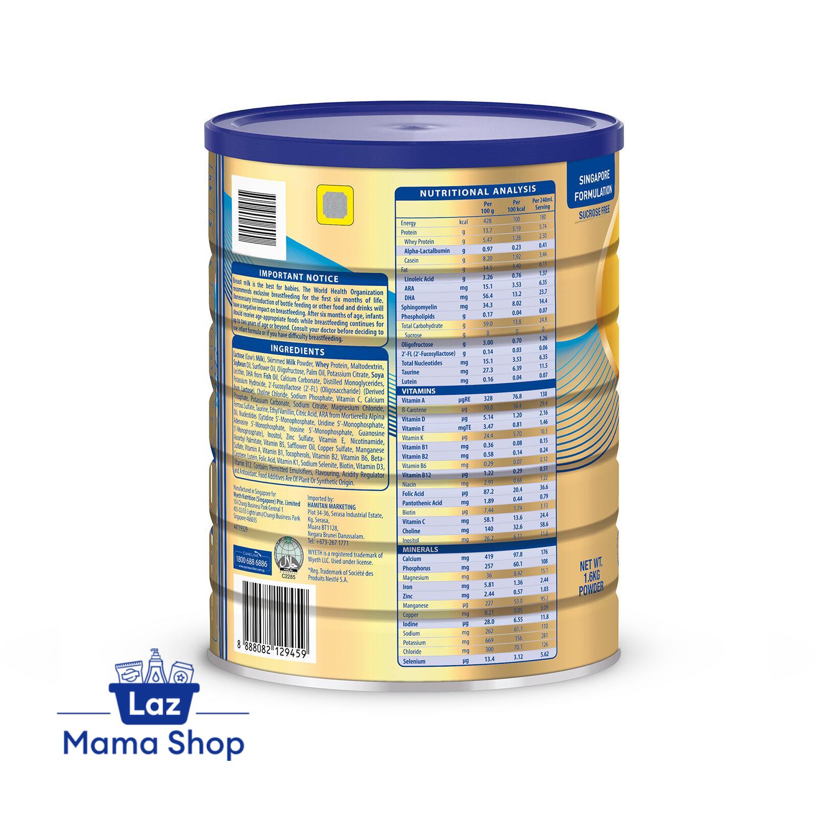 Lactose (Cow’s Milk), Skimmed Milk Powder, Whey Protein, Maltodextrin, Soybean Oil, Sunflower Oil, Oligofructose, Palm Oil, Potassium Citrate, Soya Lecithin, DHA from Fish Oil, Calcium Carbonate, Distilled Monoglycerides, Potassium Hydroxide, 2’-Fucosyllactose (2’-FL) (Oligosaccharide) (Derived from Lactose), Choline Chloride, Sodium Phosphate, Vitamin C, Calcium Phosphate, Potassium Carbonate, Sodium Citrate, Magnesium Chloride, Ferrous Sulfate, Taurine, Ethyl Vanillin, Citric Acid, ARA from Mortierella Alpina Oil, Nucleotides (Cytidine 5'- Monophosphate, Uridine 5’- Monophosphate, Adenosine 5'- Monophosphate, Inosine 5'-Monophosphate, Guanosine 5’-Monophosphate), Inositol, Zinc Sulfate, Vitamin E, Nicotinamide, Ascorbyl Palmitate, Vitamin B5, Safflower Oil, Copper Sulfate, Manganese Sulfate, Vitamin A, Vitamin B1, Tocopherols, Vitamin B2, Vitamin B6, Beta-Carotene, Lutein, Folic Acid, Vitamin K1, Sodium Selenite, Biotin, Vitamin D3, Vitamin B12. Contains Permitted Emulsifiers, Flavouring, Acidity Regulator and Antioxidant. Food Additives Are Of Plant Or Synthetic Origin.