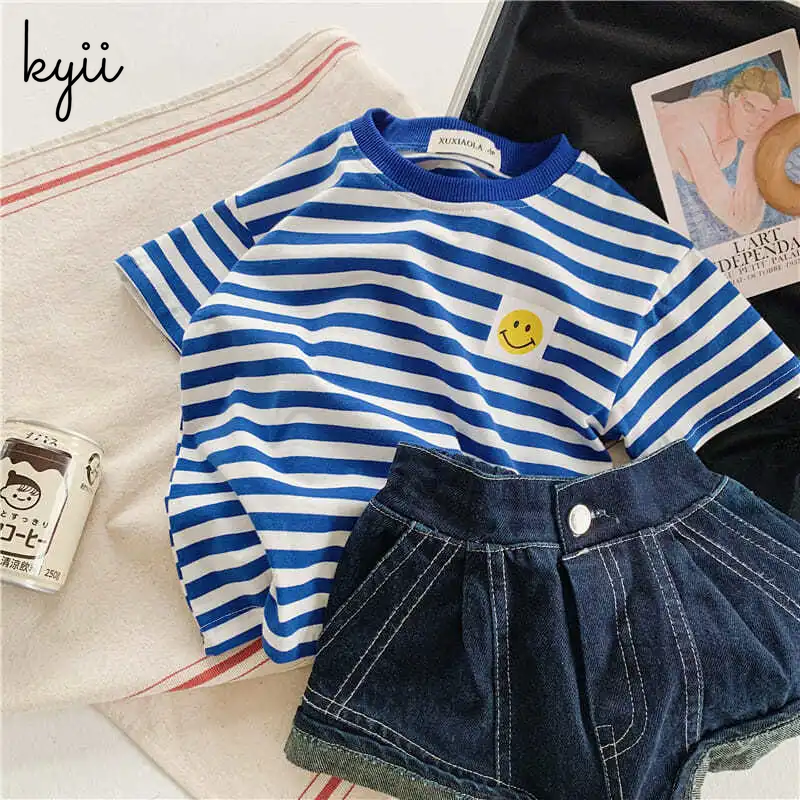 KYII Children summer cotton short sleeve shirt Stripe Korean Shirt kyb007