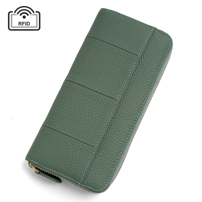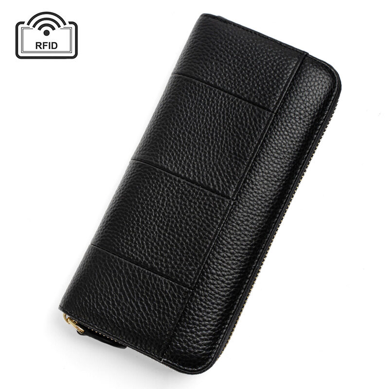 Royal Bagger New RFID Zipper Long Wallets for Women Genuine Cow Leather Large Capasity Ladies Clutch Bag Multifunction Casual Girl Card Holders Coin Purse Phone Bag