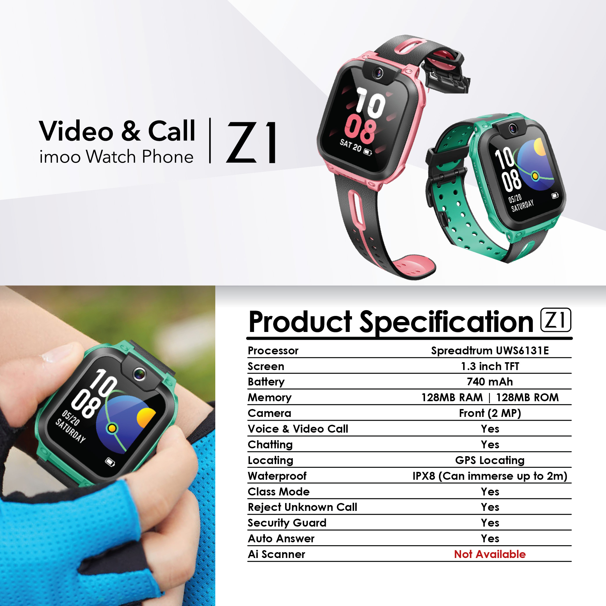 • IPX8 Water-Resistance : With qualified water-resistant material, the child can wash hands wearing imoo watch phone.