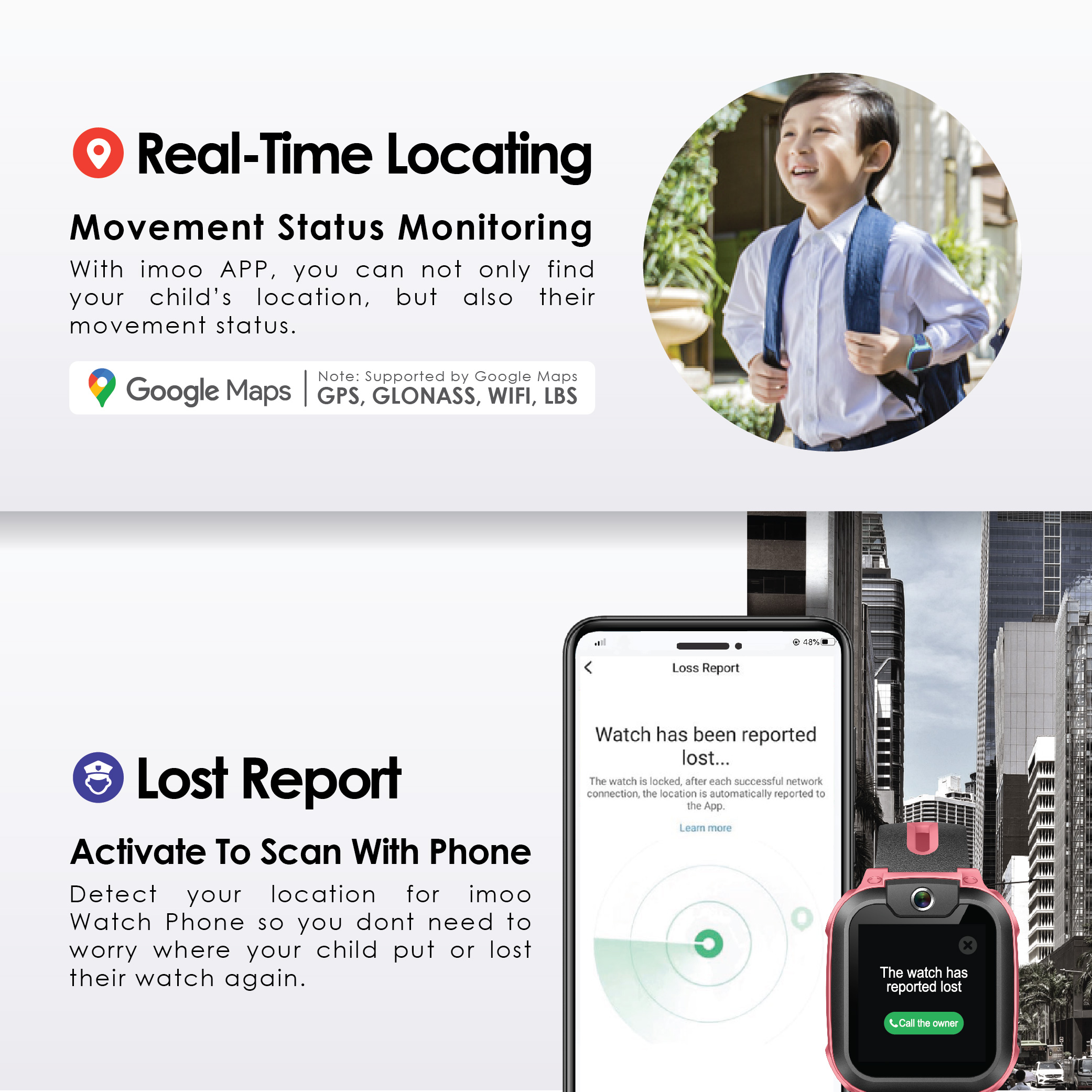 • Realtime HD Video Call : The parents can monitor their kids’ location and surround with 2MP wide camera.