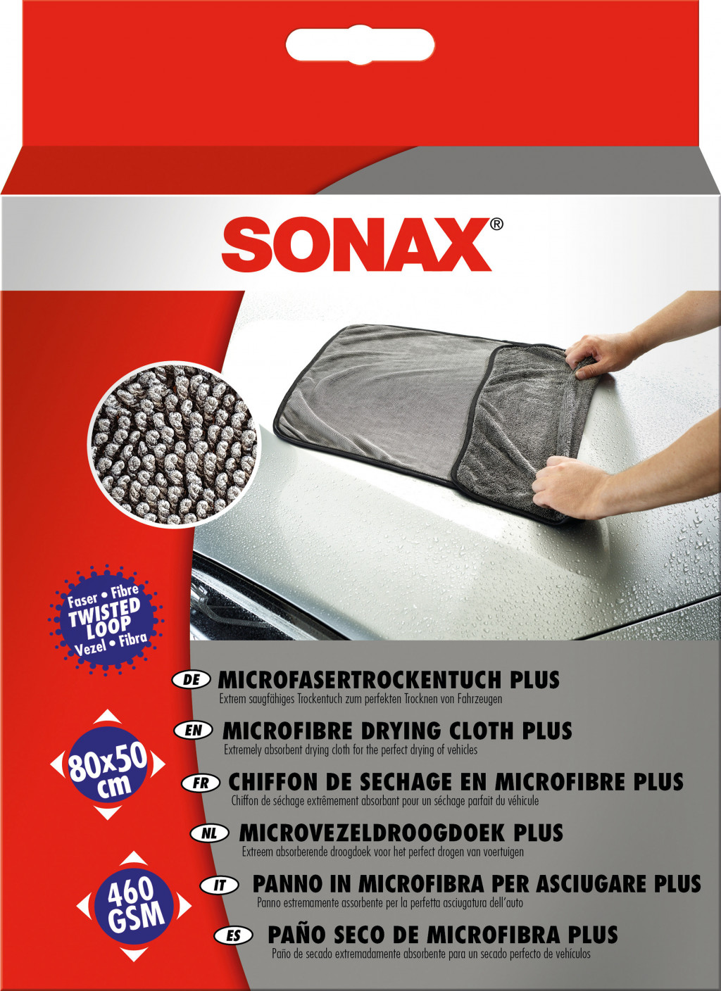SONAX Microfibre Drying Cloth Plus for perfect drying of vehicles.