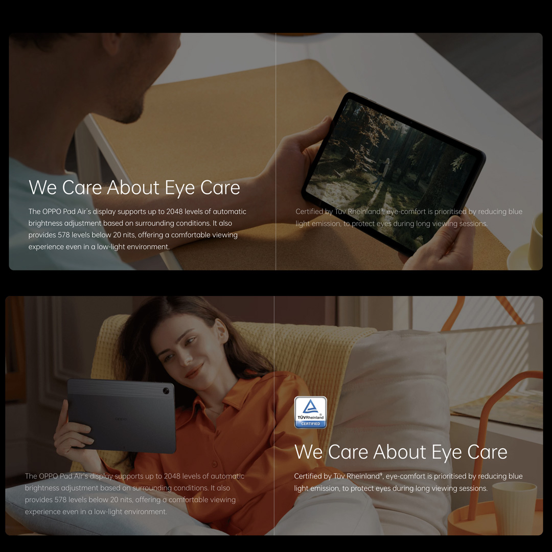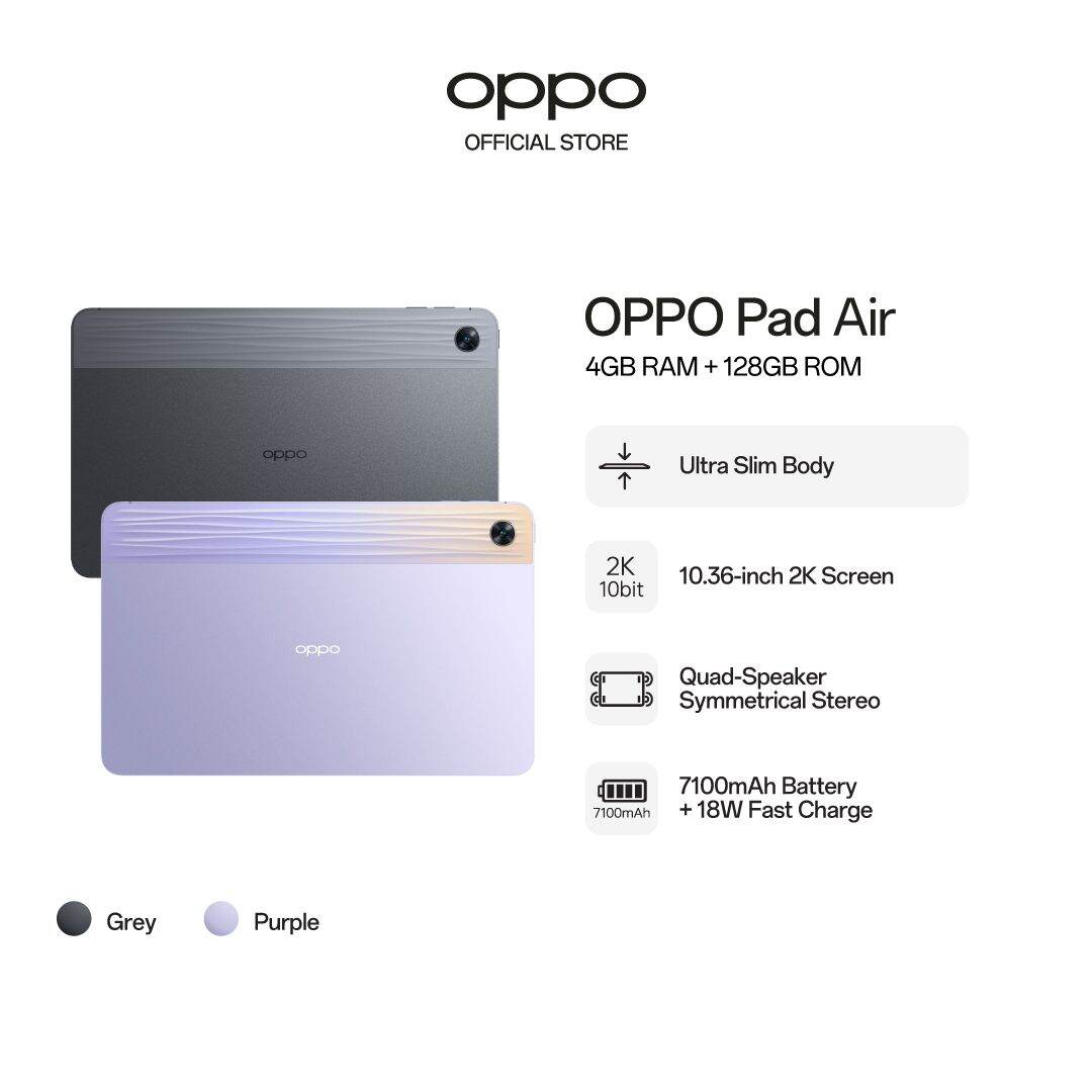 OPPO Pad Air / Ultra-Slim Body / 10.36" 2K Screen / Quad-Speaker Symmetrical Stereo / 7100mAh Battery 18W Fast Charge
