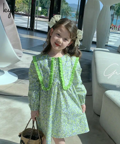 KYII Kids Girls Summer Round-neck Dress Casual Loose Dress kyii0058
