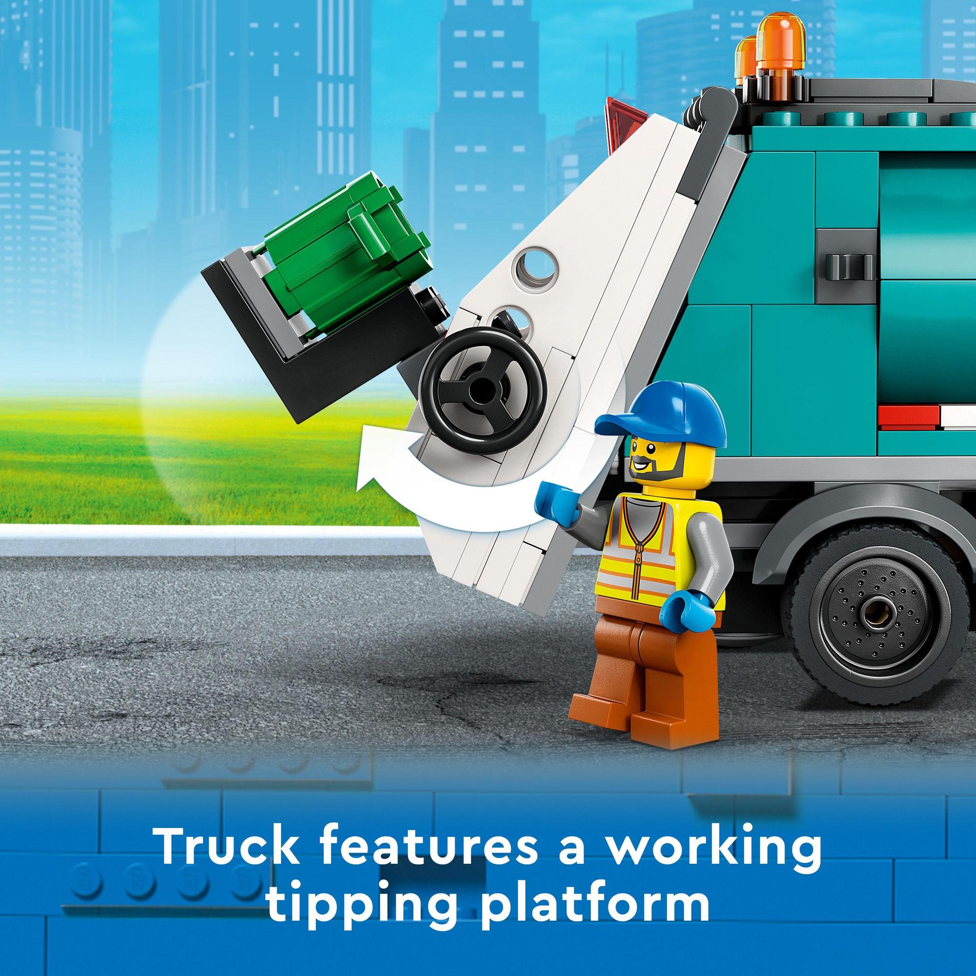 Caring for the environment is fun with this recycling lorry set, featuring a recycling centre, 3 minifigures and a cat figure.
