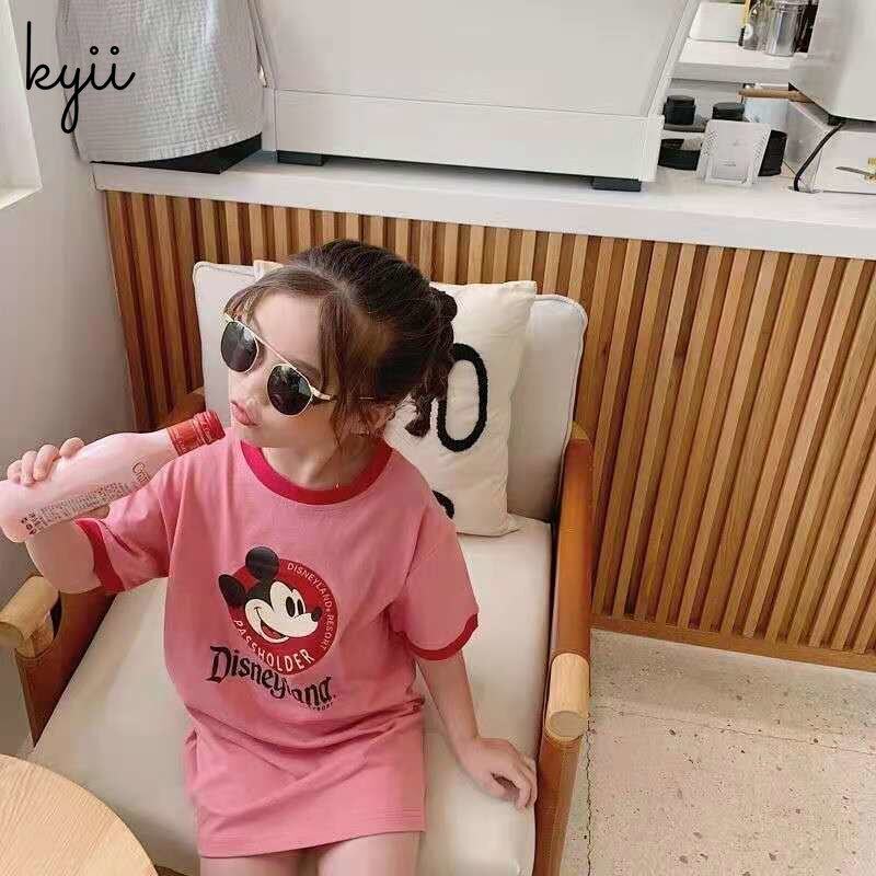KYII Kids Girls Summer Round-neck Dress Casual Loose Dress kyii0109