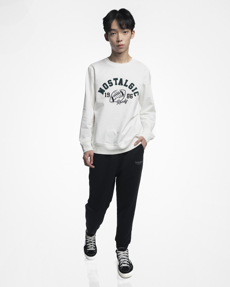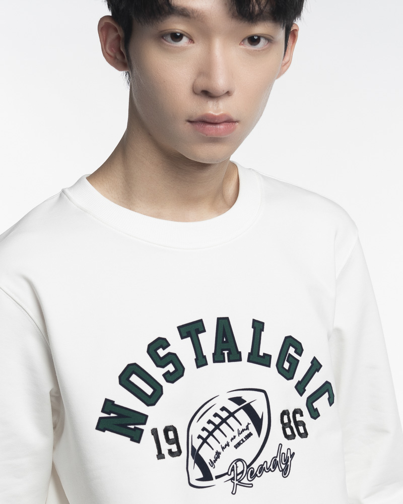 Regular Solid Coloured Long Sleeve Sweatshirt with Round Neck. Comes with NOSTALGIC Slogan and Rugby Ball Outline Graphic at the front. Made of cotton.