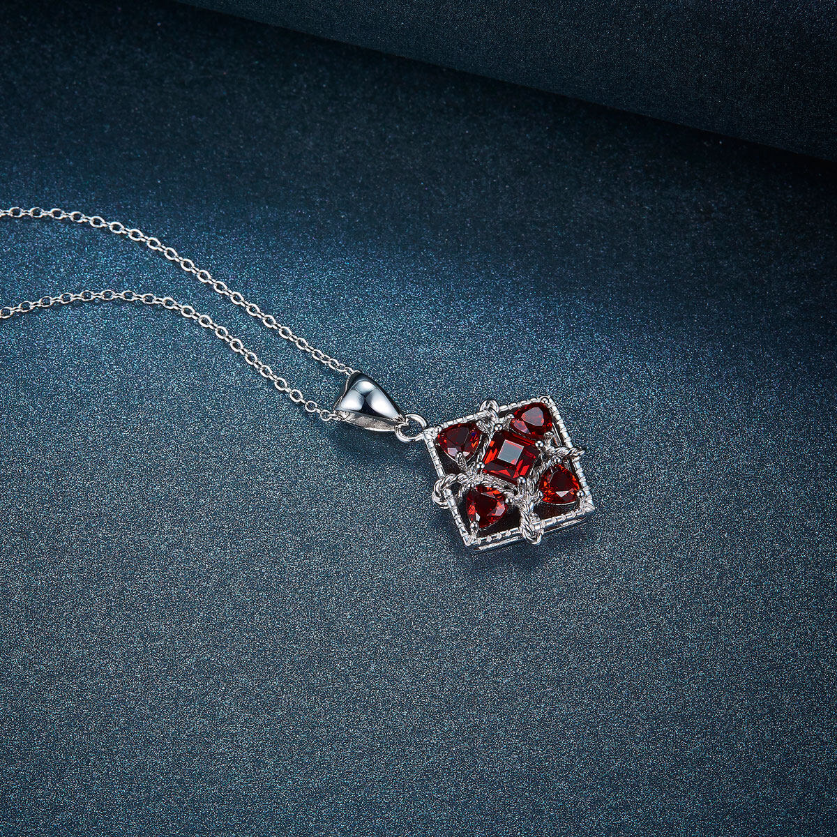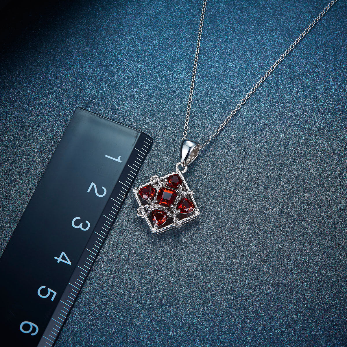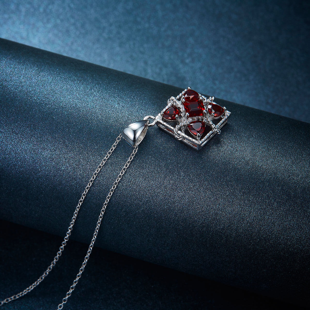 Pendant Necklace for Women's Gift Natural Gemstone Garnet Pure 925 Silver Fashion