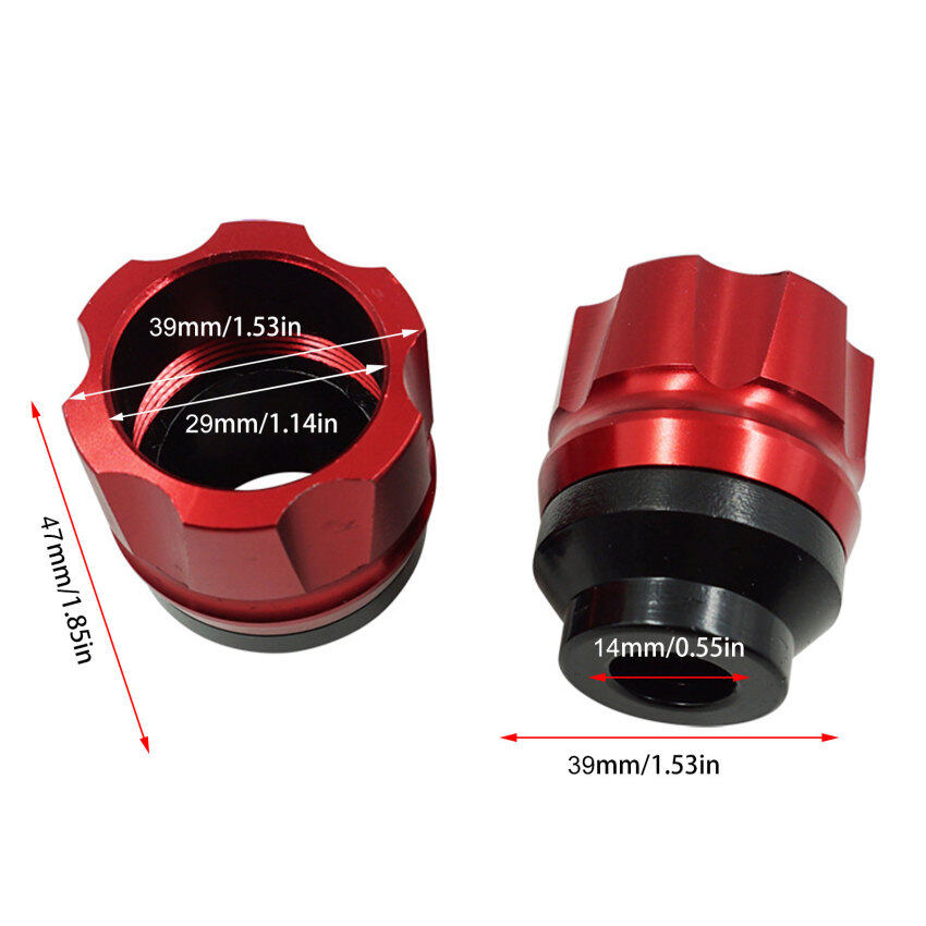 2 PCs Universal Motorcycle Frame Slider Cups Aluminum Alloy Front Fork Cup Falling Crush Protector for Motorbike ScooterFeatures:A great accessory for owners of motorbikes, E-Bike, moped and Electric scooters.These Protective Anti-crash sliders offer great benefits and adds more, aesthetic appeal to your ride.100% brand new and high qualityPerfect for your motorcycleExcellent quality and durableSpecification:Type: Parts & AccessoriesMaterial: Aluminum AlloyColour: Black, Gold, RedSize: As shownPackage includes: 2pcsNote:1. Please allow slightly error due to manual measurement.2. Due to the difference between different monitors, the picture may not reflect the actual color of the item.