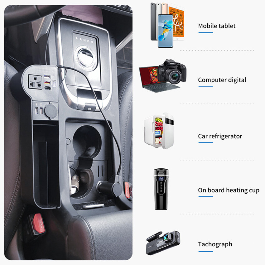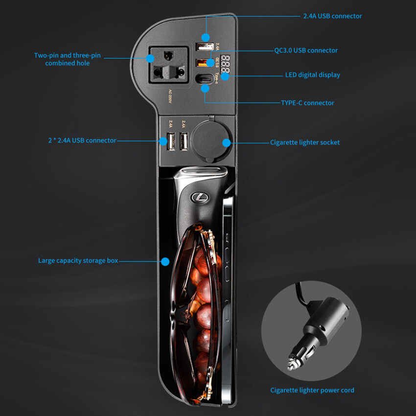 12V/24V to 220V Car Seat Gap Organizer Multifunctional Seat Crevice Storage Box LED Voltage Display Universal Car Accessories
