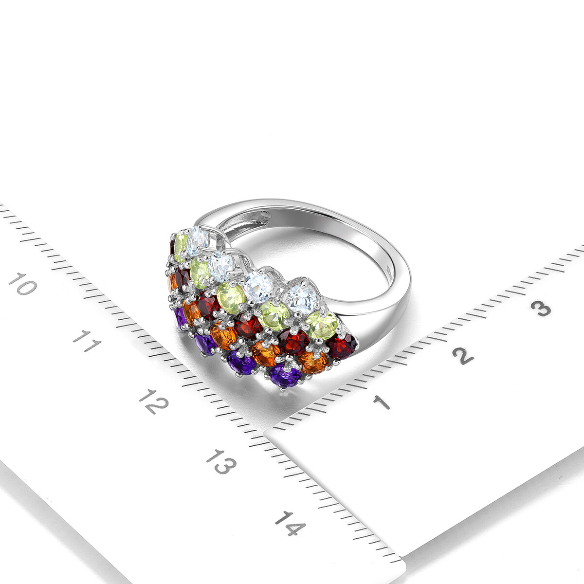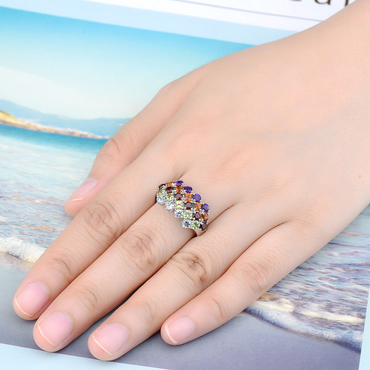 Lohaspie Jewelry Real 3 Carats 925 Silver Ring With Gemstone Natural Peridot Garnet Ring Colorful Gemstone Ring Garnet Ring For Women Jewelry Christmas Gift