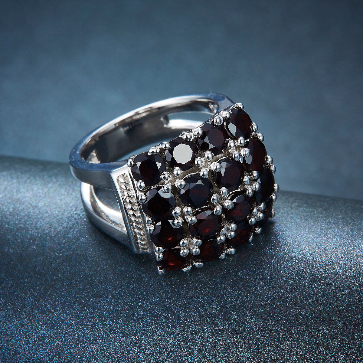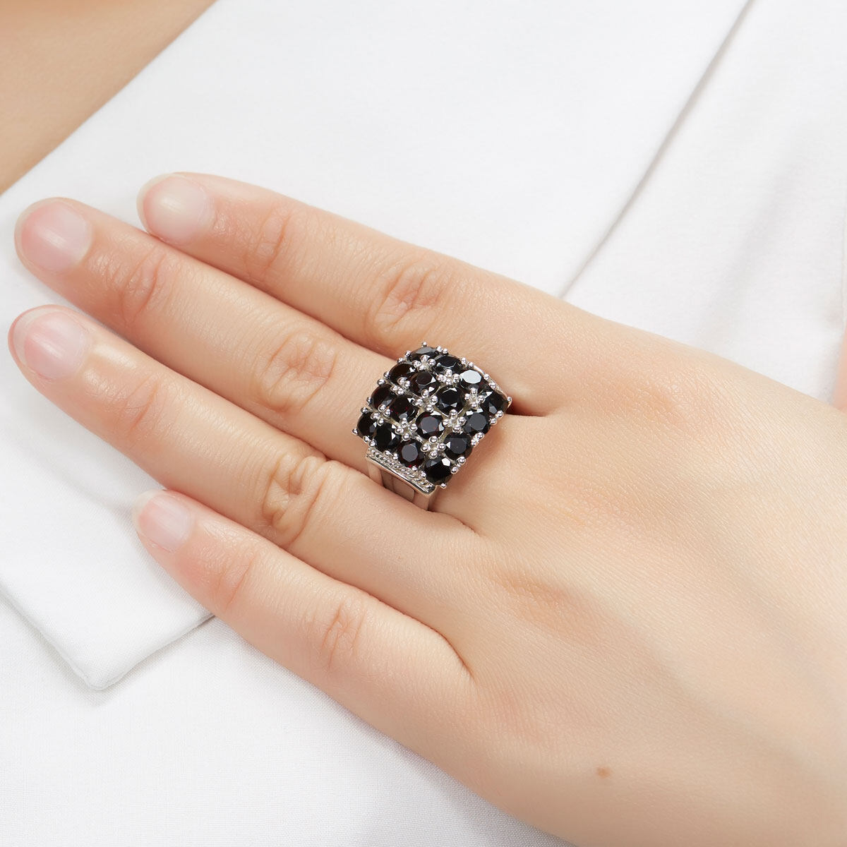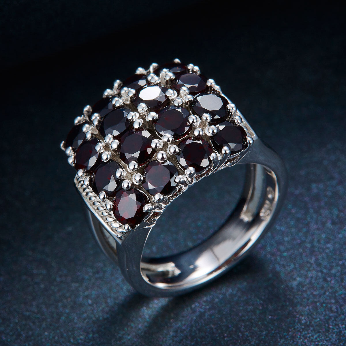 Engagement Rings for Women Gift Natural Black Garnet 925 Sterling Silver Cluster Gemstone Party