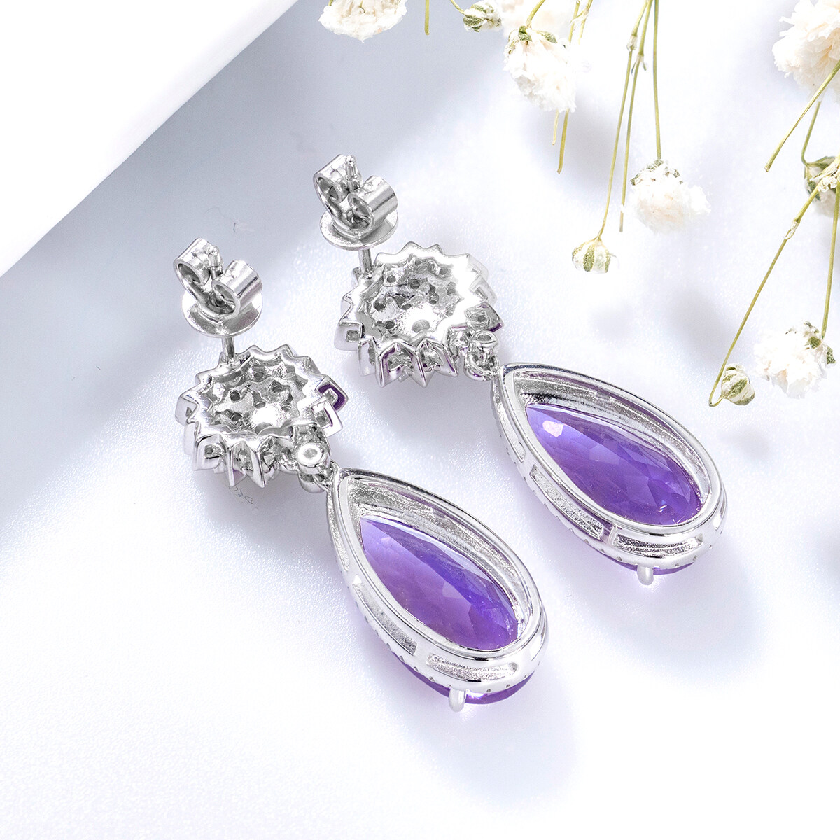 12.8 Carats Drop Earring Silver 925 Origianl Sale Natural Amethyst Earring Purple Gemstone Amethyst Earrings For Women Jewelry Wedding Style