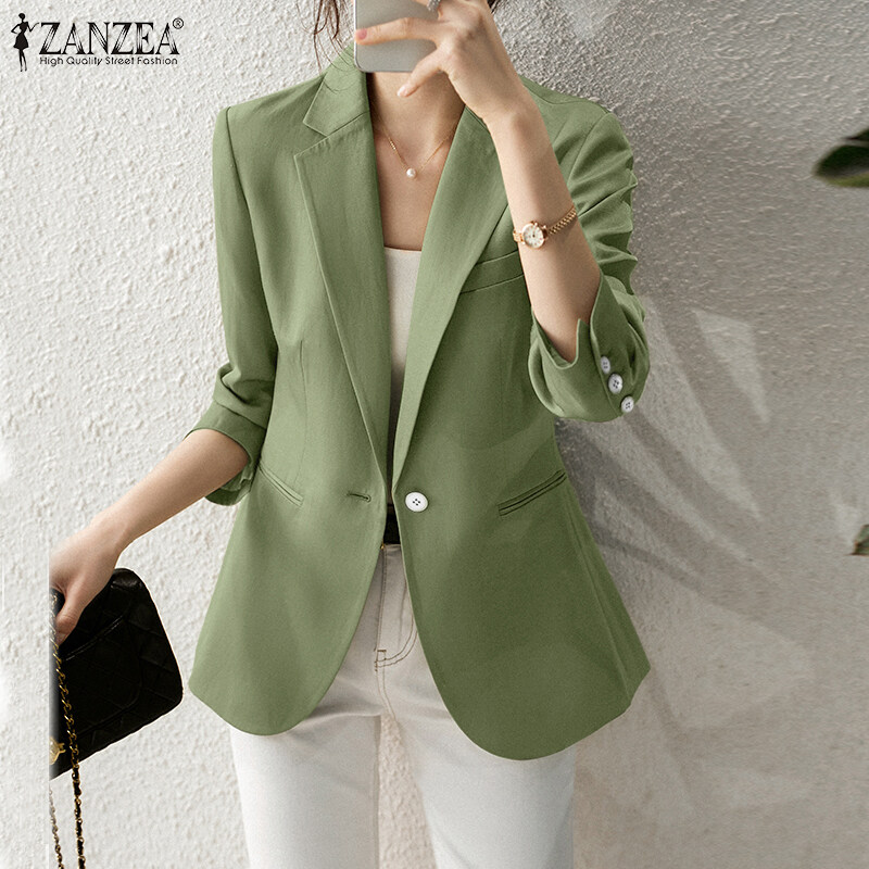 ZANZEA Korean Style Women Formal Office Solid Overcoat Commute Button Up Blazer #3