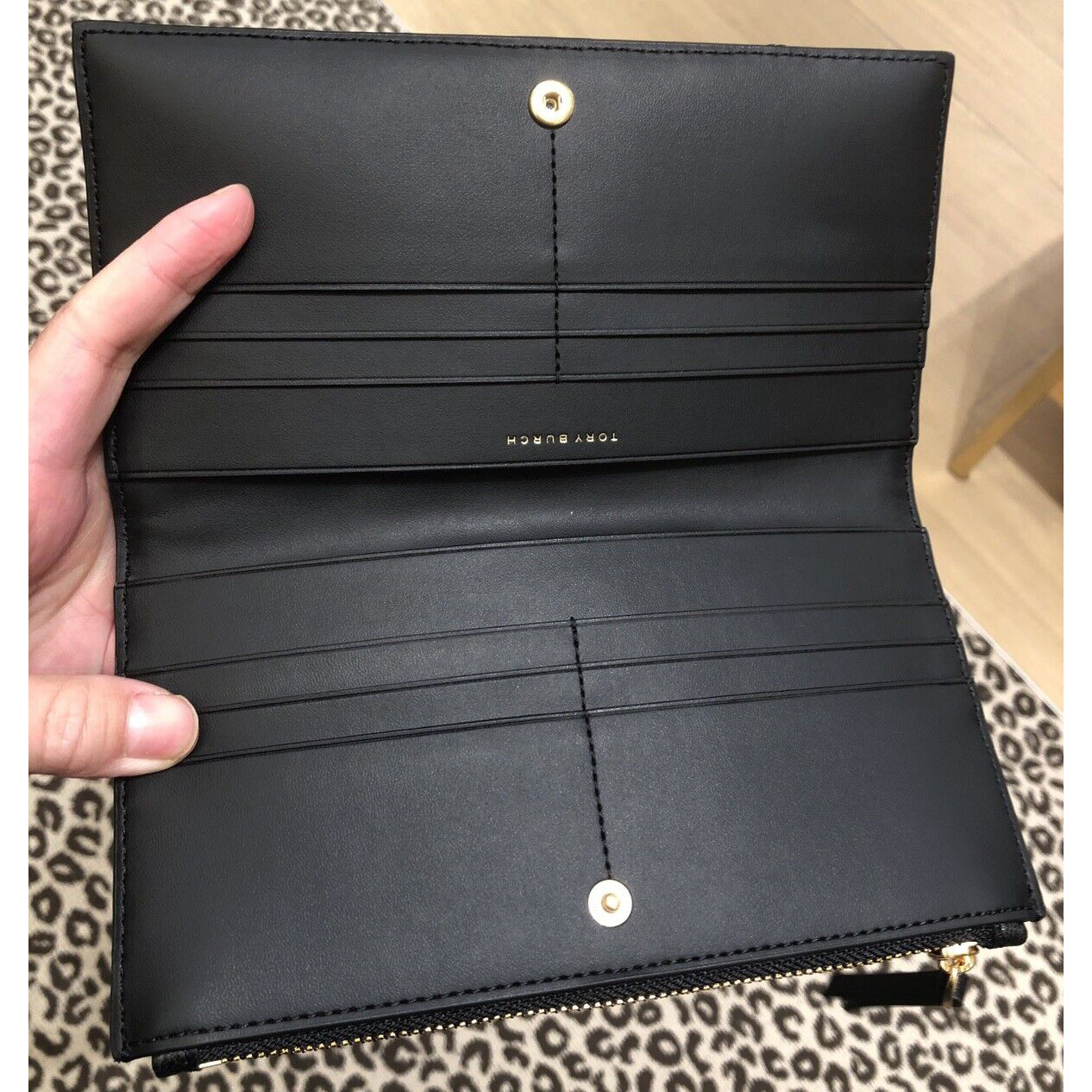 Tory Burch Wallet With Gift Paper Bag Willa Quilted Leather Slim Envelope Wallet Black # 89490