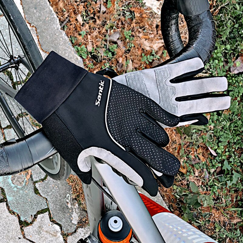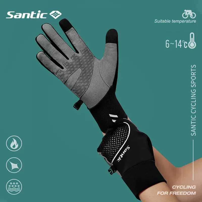 Santic Cycling Gloves Winter Men Women Windproof Thermal Bicycle Bike Full Finger Gloves