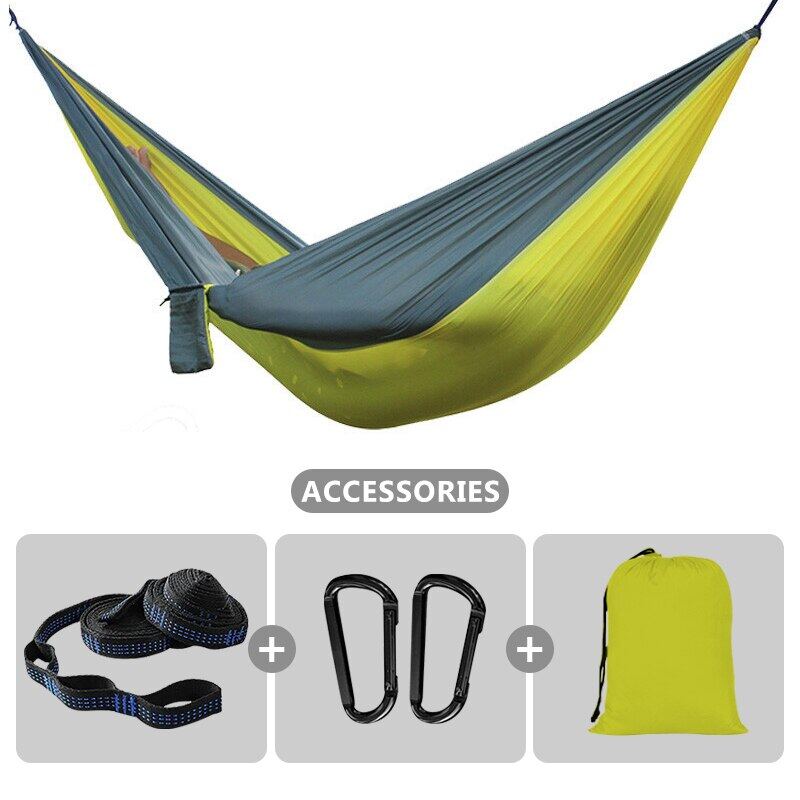 Soft material & Support 500 pounds - Our hammocks are made of new high quality 210T parachute nylon fabric, it is very comfortable and durable. The camping hammocks provide relaxing support up to 500 lbs.