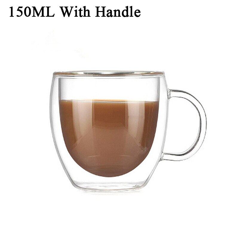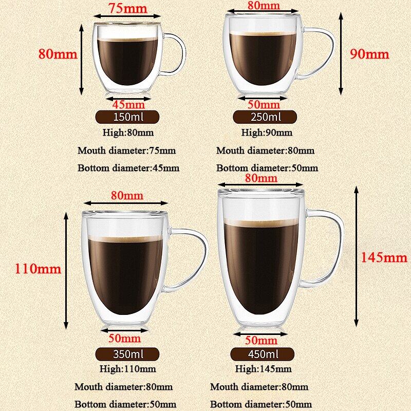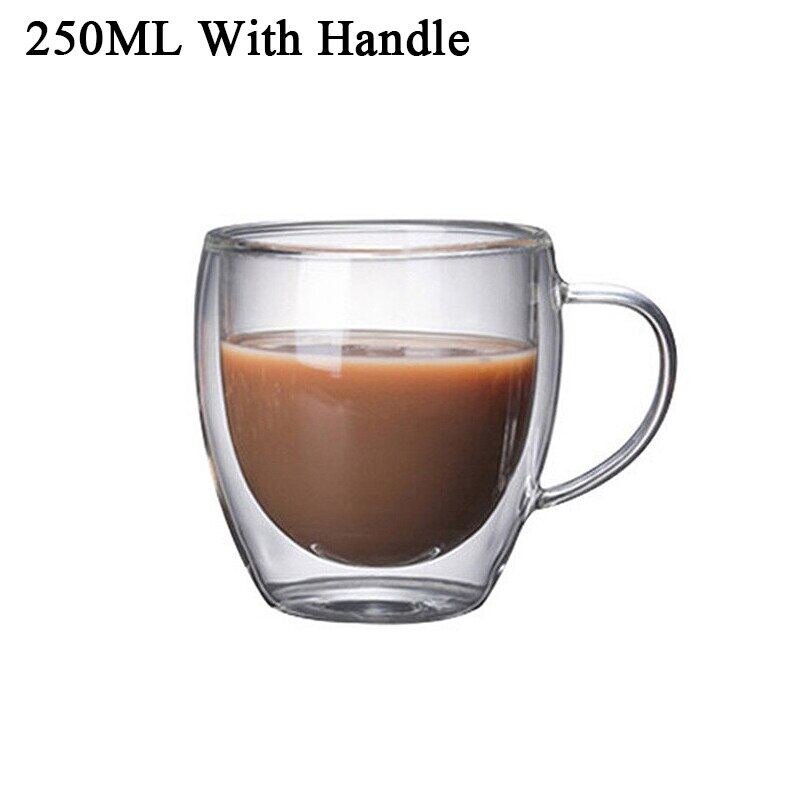 Transparent glass coffee cup milk whiskey tea beer double creative heat resistant health and environmental protection