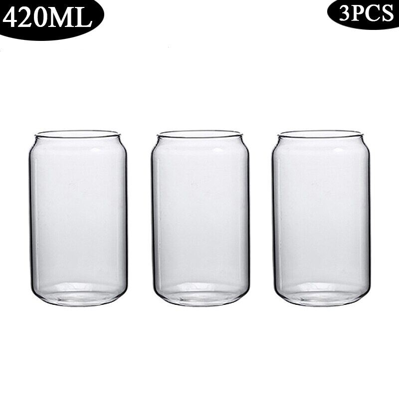 420/600ML 2-6PCS Transparent Glass Cup With Lid Straw Bubble Tea Cup Juice Coffee Beer Can Milk Mocha Breakfast Mug Drinkware
