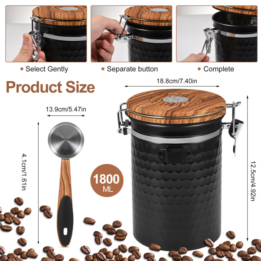 4.Universal: airtight coffee canister/storage jar made of stainless steel for storage and protection of cereals, spices, coffee, tea, flour, cereal, nuts, rice, salt, sugar, sweets, tea, dried fruits, wheat, rice, pastries, spaghetti, tea and animal food.