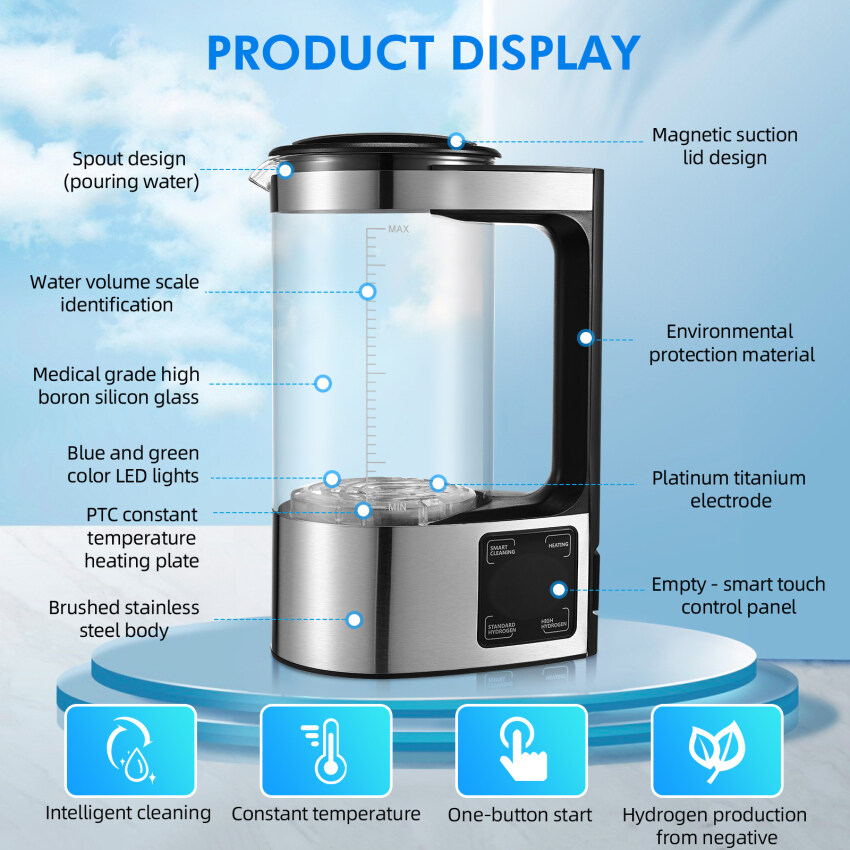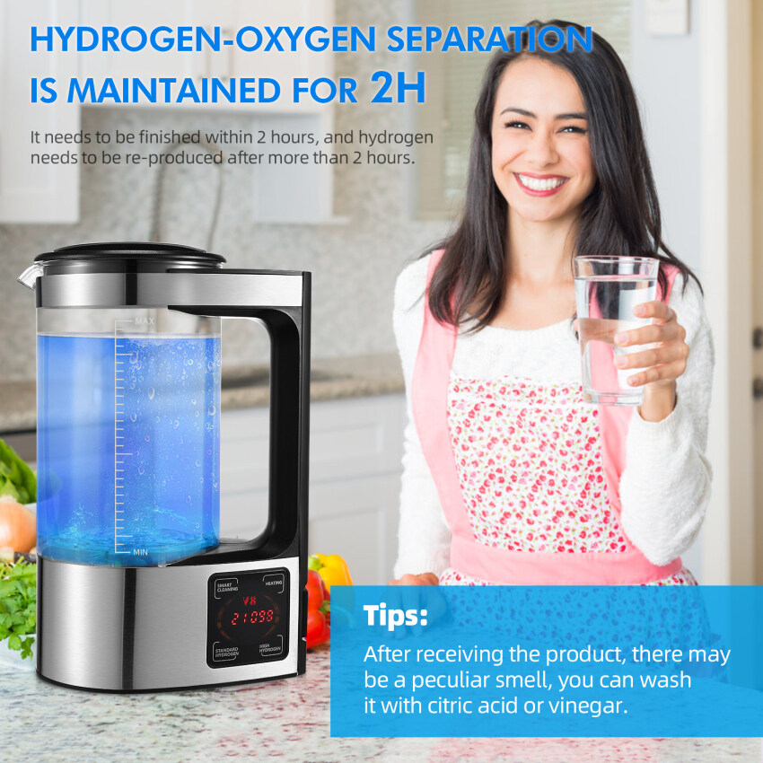 Intelligent self-cleaning: the hydrogen water bottle can be cleaned automatically thoroughly after pressing the button. It is cleaner, more convenient and time-saving. 2L large capacity can meet the needs of the whole family.