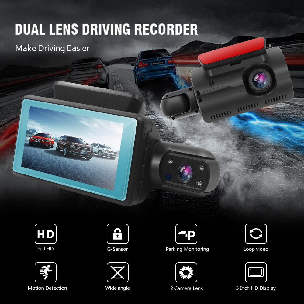 2 Cameras Lens 3.0 Inch Dash Camera (Front + Inside )