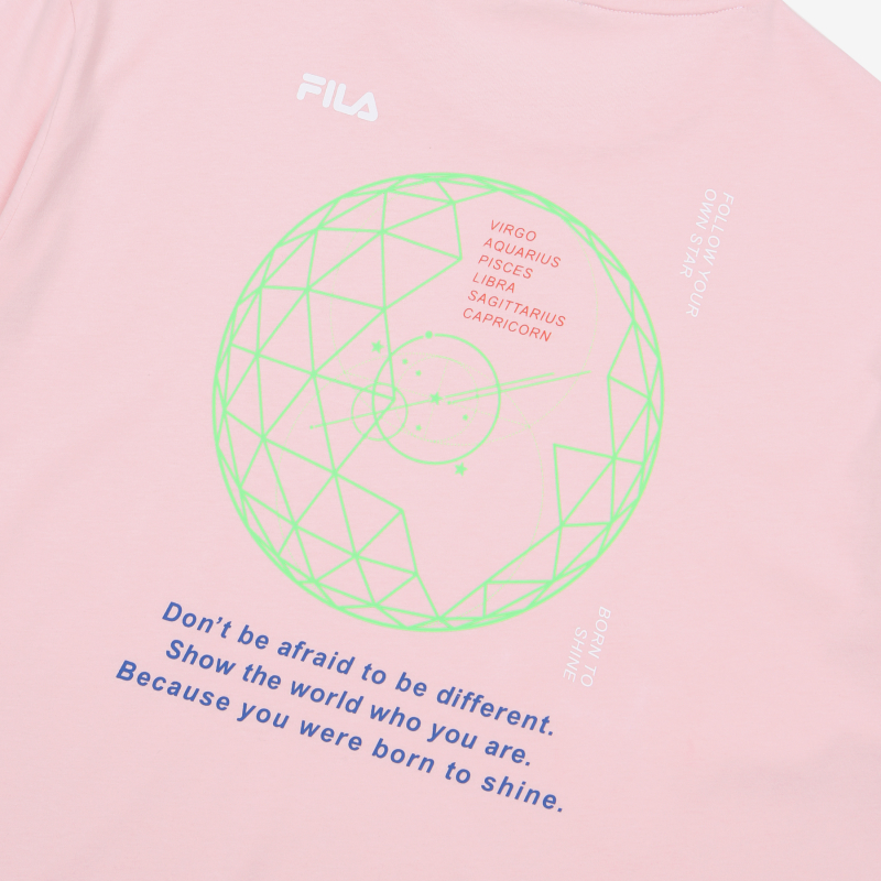 LSE FIT (Fits a size bigger, oversized)[Voyager Collection] by SS20FILA Korea,which applies the artwork and materials to match the trend of the motif from the Space and Stars.Fit to keep a comfortable fit that doesn't stick to the bodyMade of polyester / cotton blend, easy to wash and excellent in shape stability.Material: 75% Cotton, 25% polyester