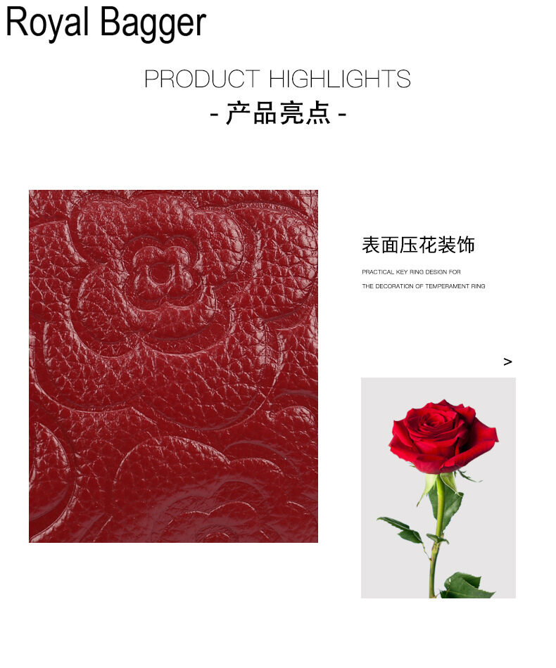 Royal Bagger Genuine Cow Leather New Fashion Double Zipper Flower Long Wallet Purse For Women Girls Super Hot High Capacity Clutch Bag Handbag Women's Multifunction Bags Casual Multi-Card Position Wal