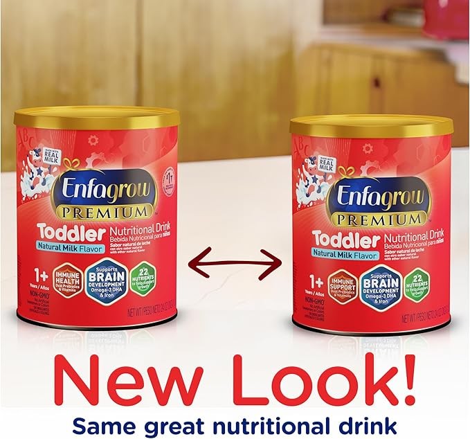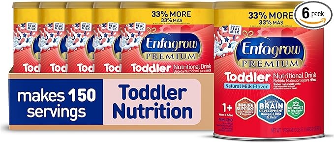 Enfagrow PREMIUM Toddler Nutritional Drink, Made with Real Milk, Brain-Building Omega-3 DHA, Nutrients and Prebiotics for Growth & Immune Support, Non-GMO, Toddler Milk Powder, 32 Oz Can, 6 Count