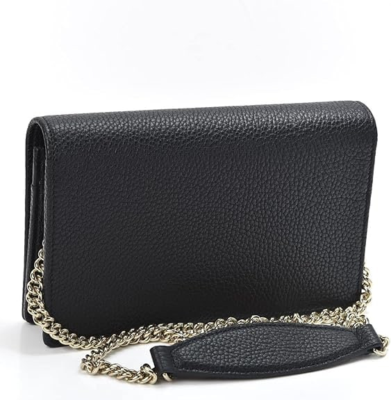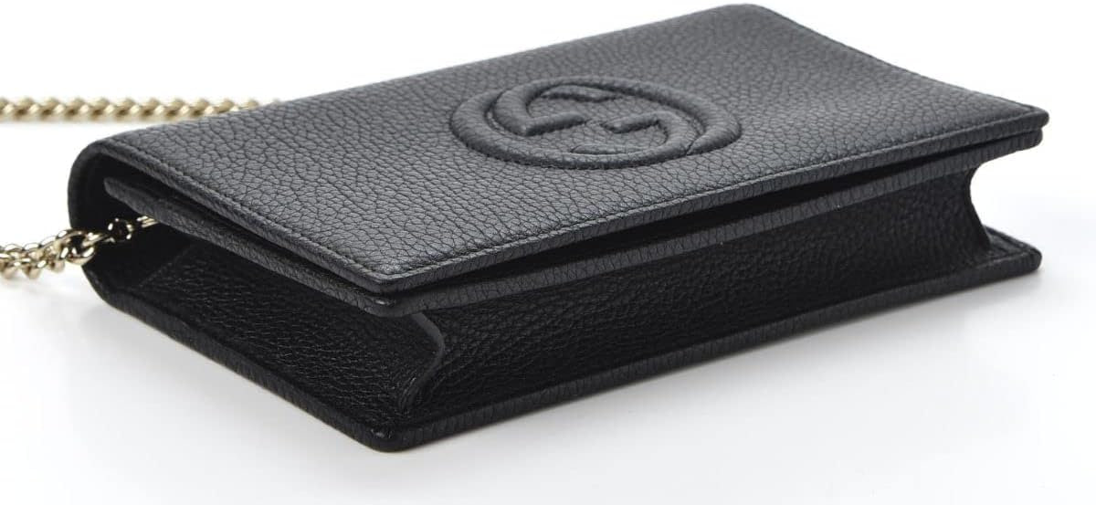 • Gucci Soho Collection Wallet on Chain in Black Textured Leather is the perfect addition to your handbag collection. Keep you essentials close at hand with this crossbody.
