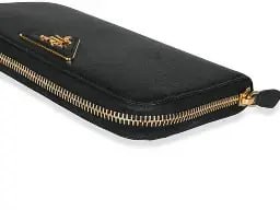 Prada Women's Large Black Tessuto Nylon and Leather Zip Around Wallet 1ML506