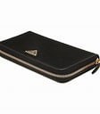 • Black saffiano leather interior lining Two bill compartments Twelve card slots